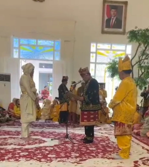 Kegiatan tersebut dihadiri oleh utusan lembaga adat dari 11 kecamatan, yang secara simbolik menyerahkan tipak adat dan seekor kerbau sebagai bentuk penghormatan serta kesiapan pelaksanaan penganugerahan gelar kehormatan.