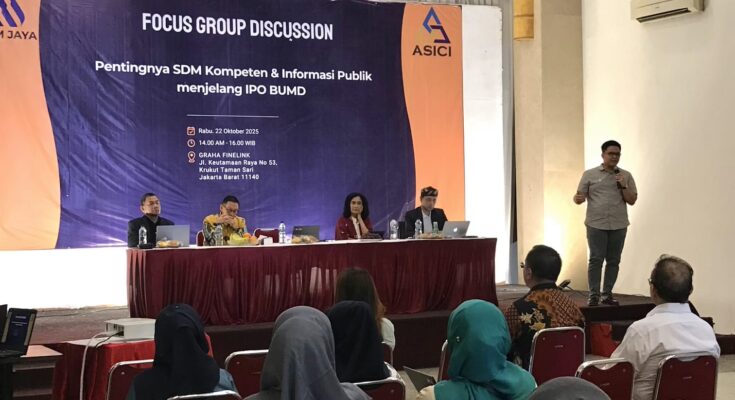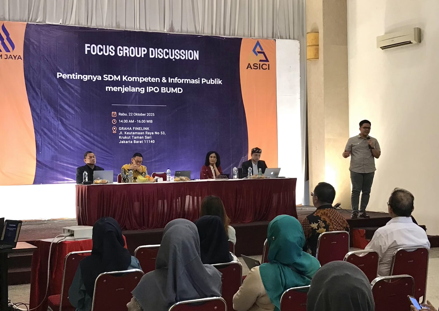 Melgisdays.com|Jakarta,– Dalam rangka memperkuat transparansi dan tata kelola menuju proses Initial Public Offering (IPO), Perumda Air Minum Jaya (PAM Jaya) berkolaborasi dengan Asosiasi Industri Content Cyber Indonesia (ASICI) menyelenggarakan Focus Group Discussion (FGD) bertajuk “Pentingnya SDM Kompeten & Informasi Publik Menjelang IPO BUMD” di Graha Finelink, Jakarta Rabu (22/10/2025).