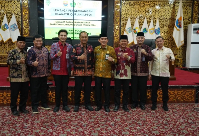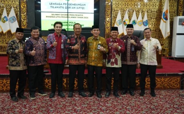 Jambi – Wakil Bupati Tanjung Jabung Timur, Muslimin Tanja, menghadiri Rapat Kerja Daerah (Rakerda) ke-55 Lembaga Pengembangan Tilawatil Qur’an (LPTQ) Provinsi Jambi Tahun 2026. Kegiatan tersebut berlangsung di Ruang Pola Kantor Gubernur Jambi, Kamis (12/02/2026).